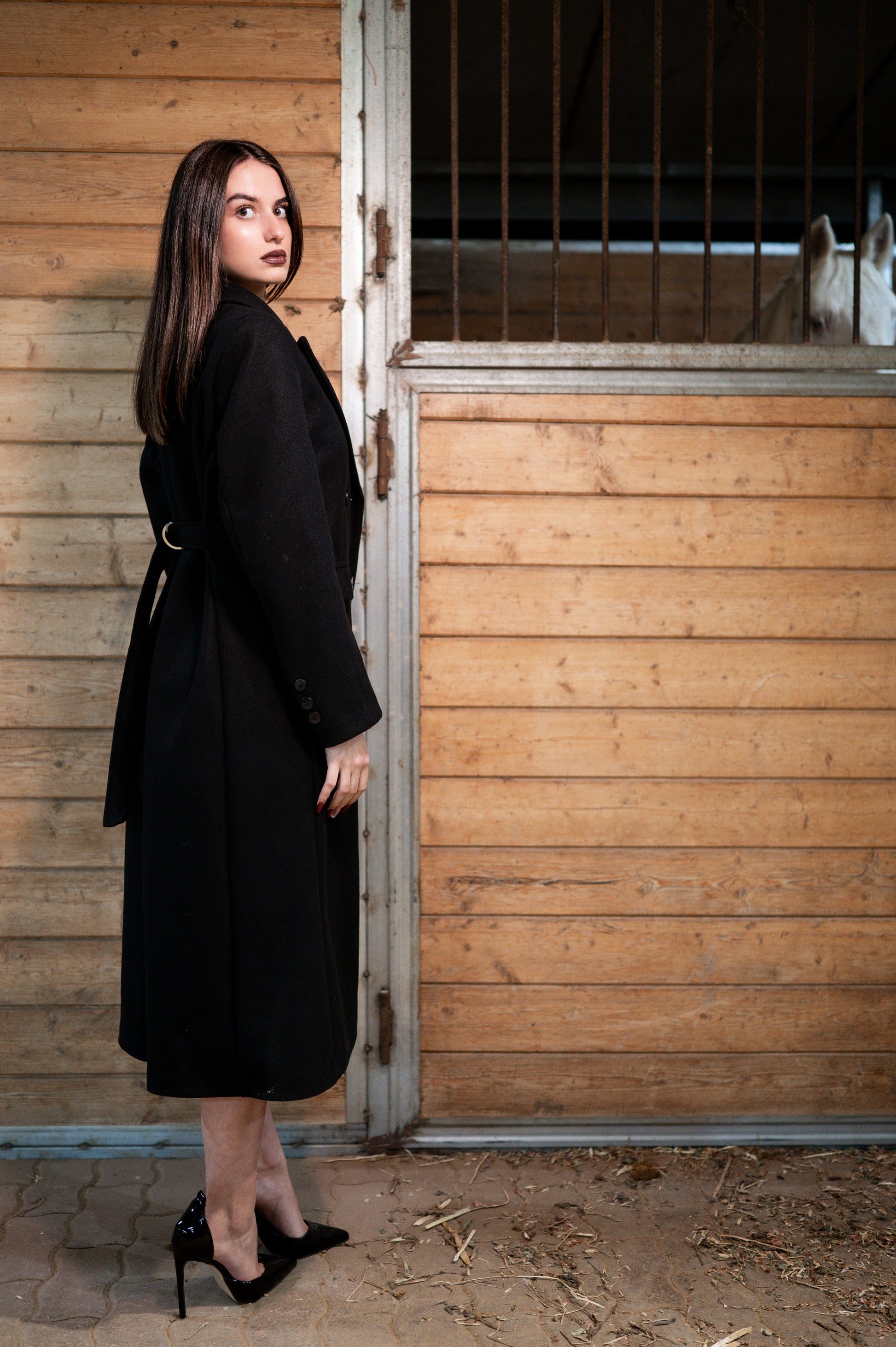 Cappotto lungo con cintura sul retro per stringere il punto vita