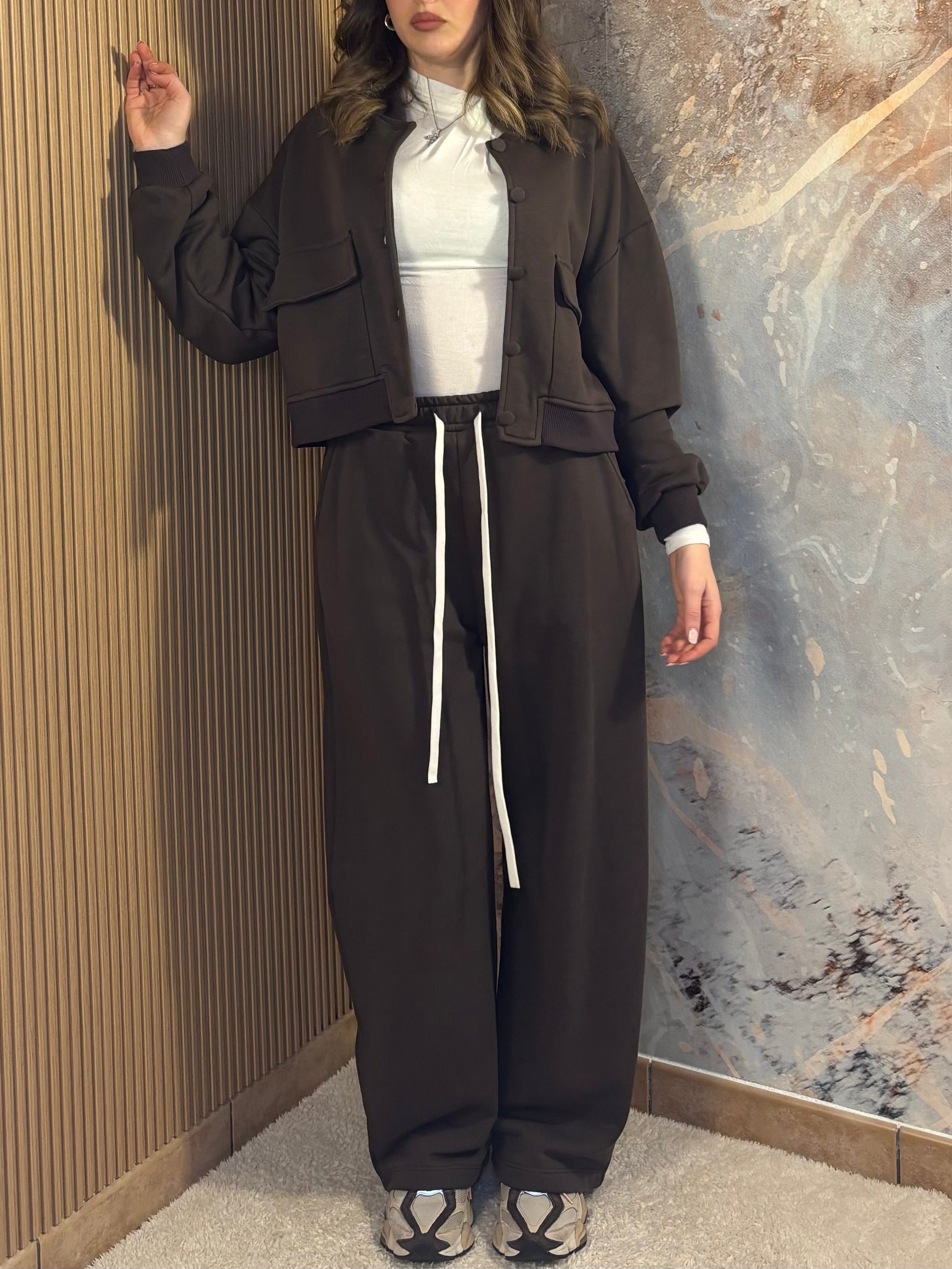 Coordinato composto da pantalone in tuta balloon con lacci regolabili e giacca con bottoni