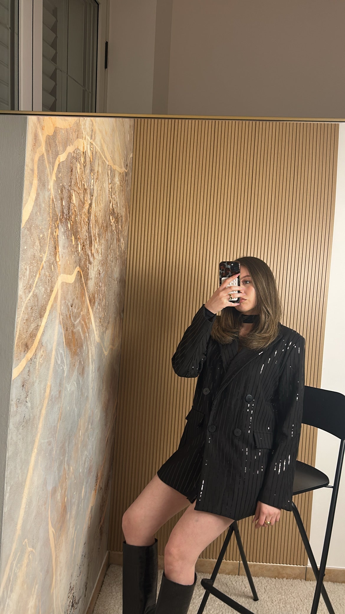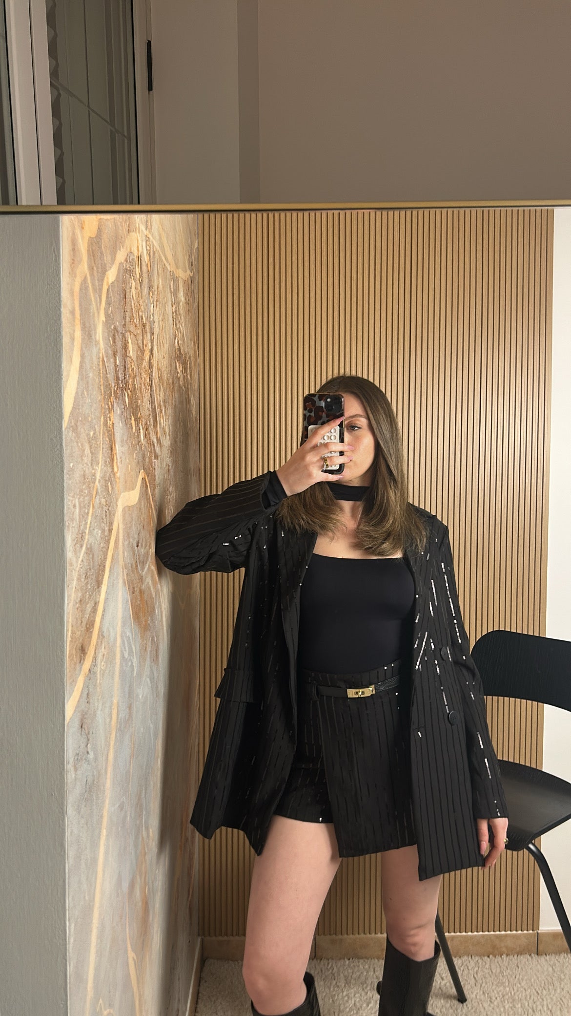 Coordinato composto da pantagonna a portafoglio e giacca oversize a doppiopetto
