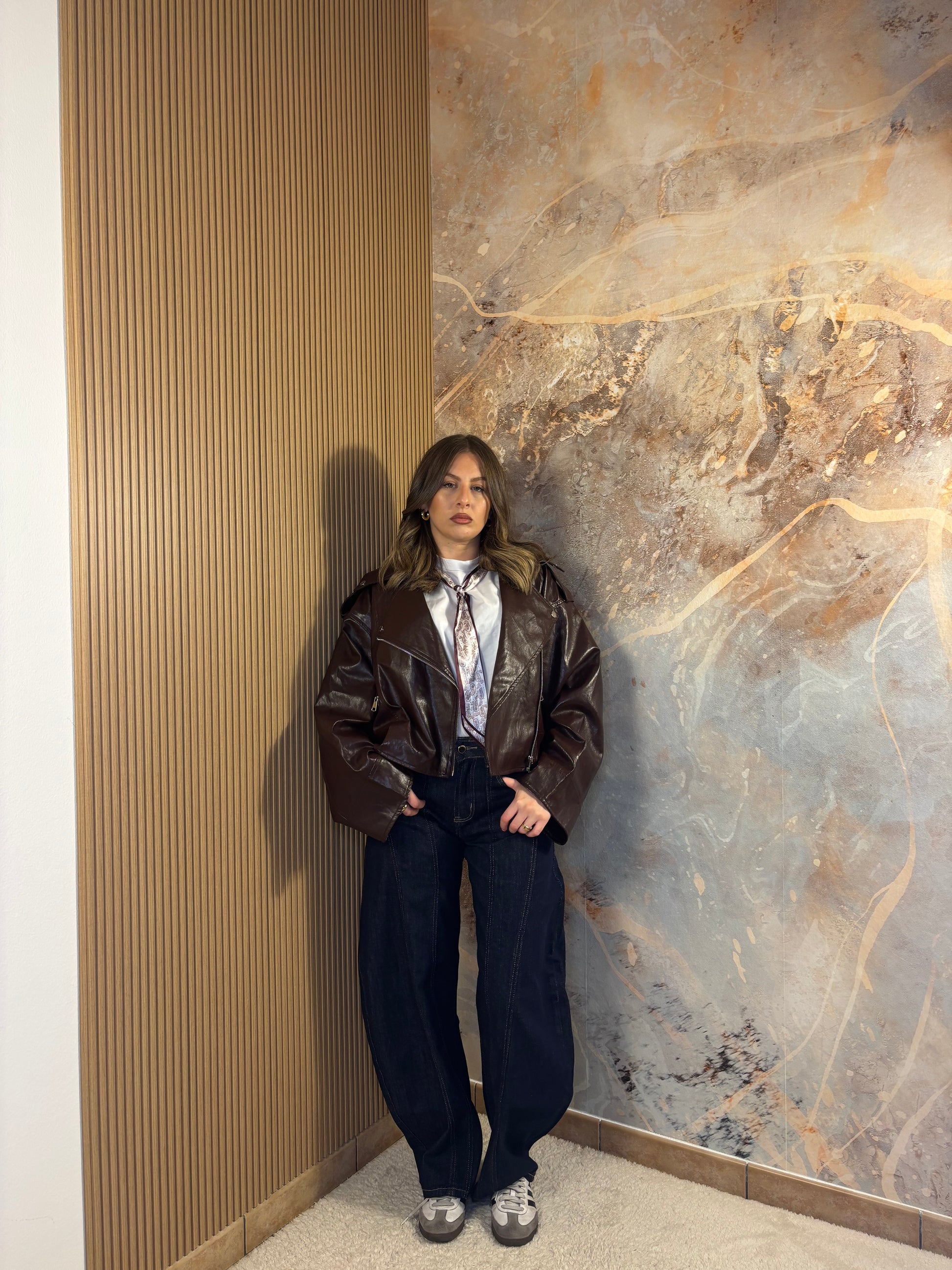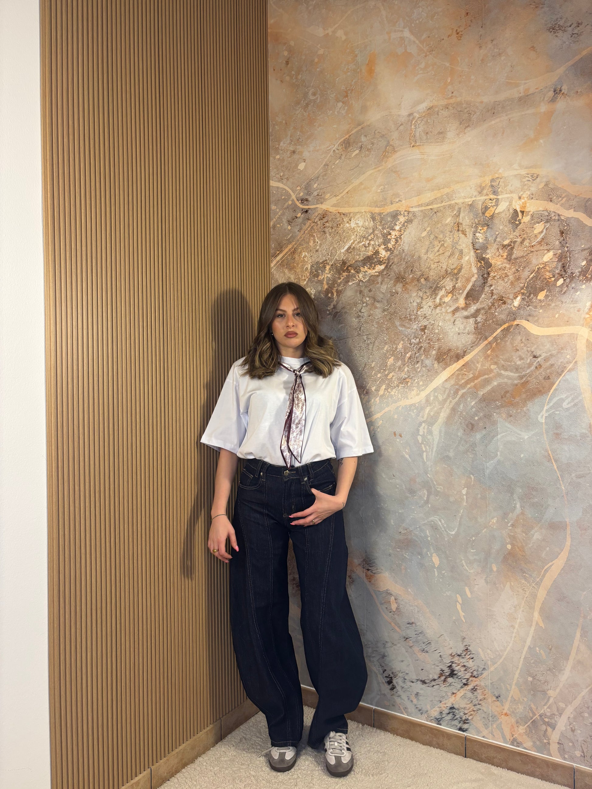 Maglia over con foulard e spalline