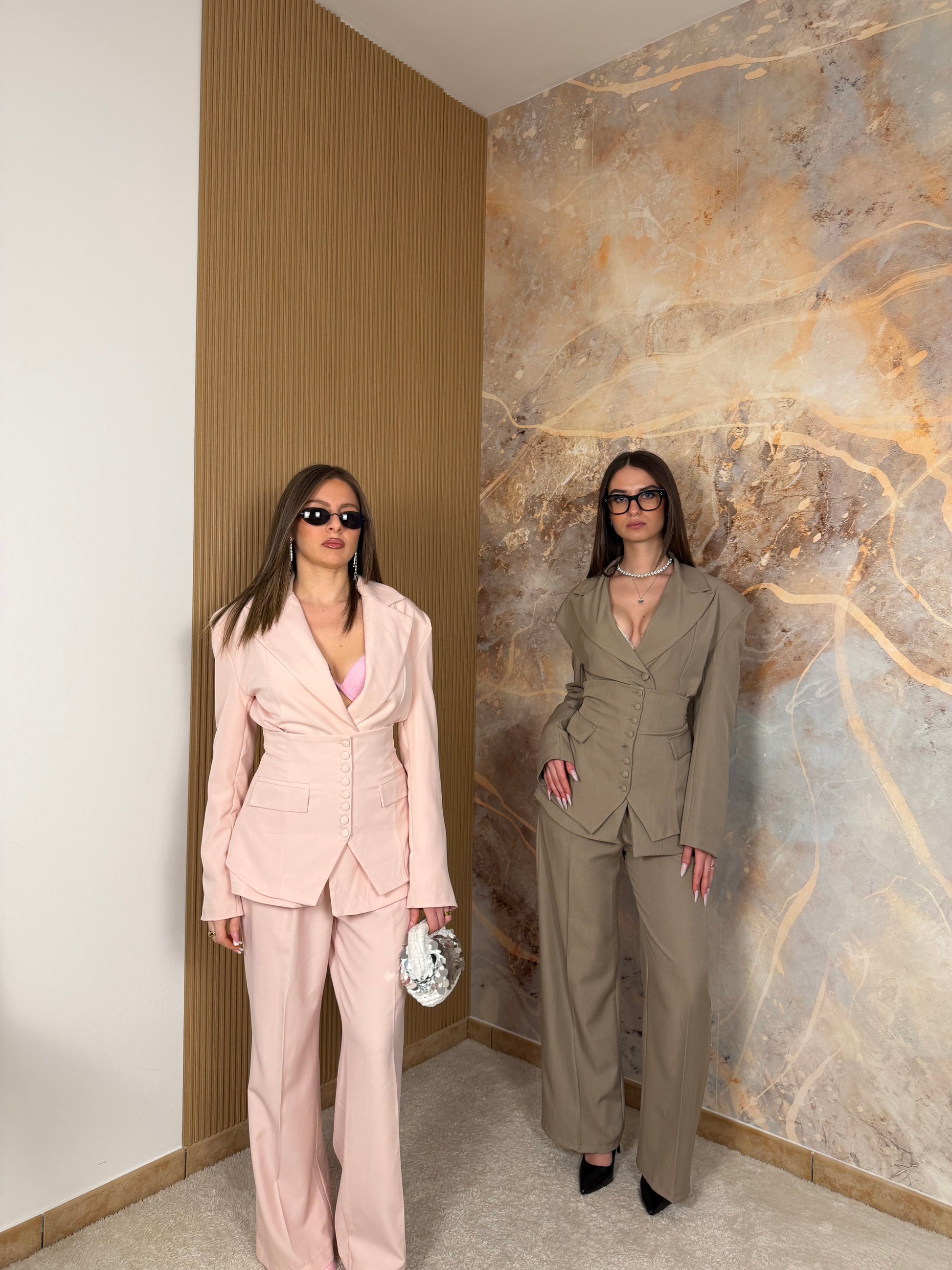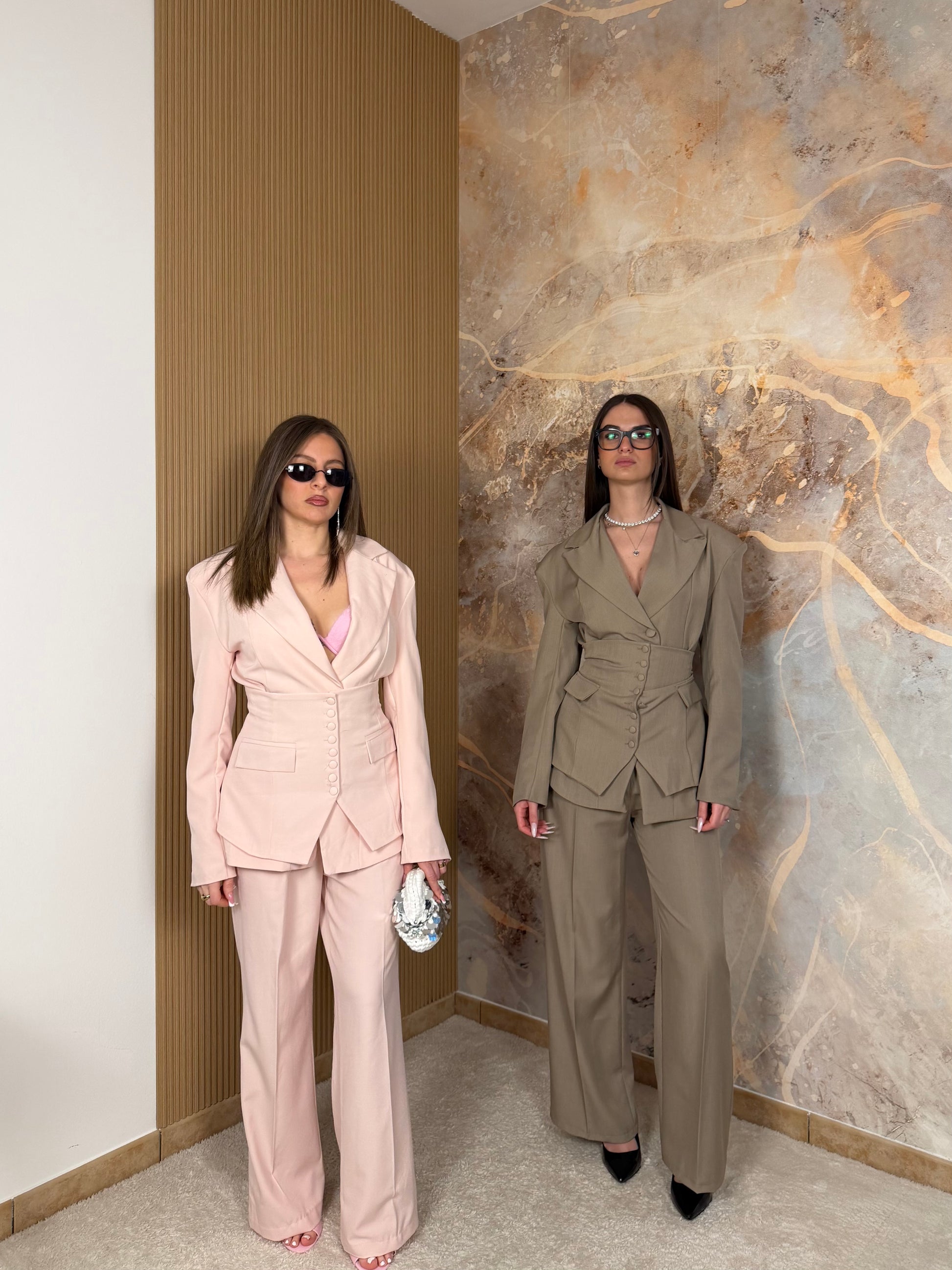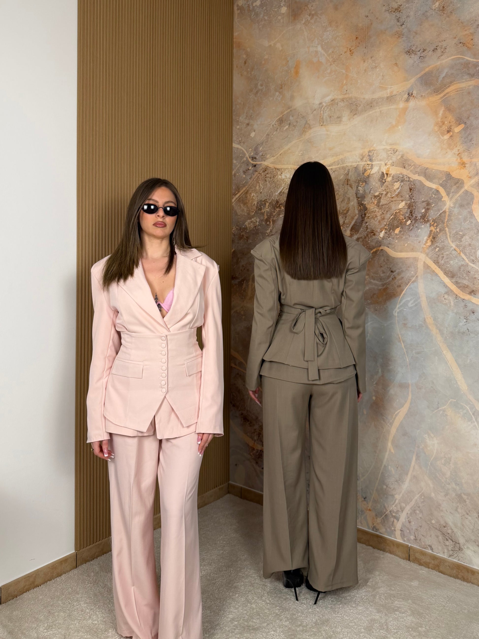Tallieur composto da giacca con spalline monobottone, bustino regolato con lacci sul retro